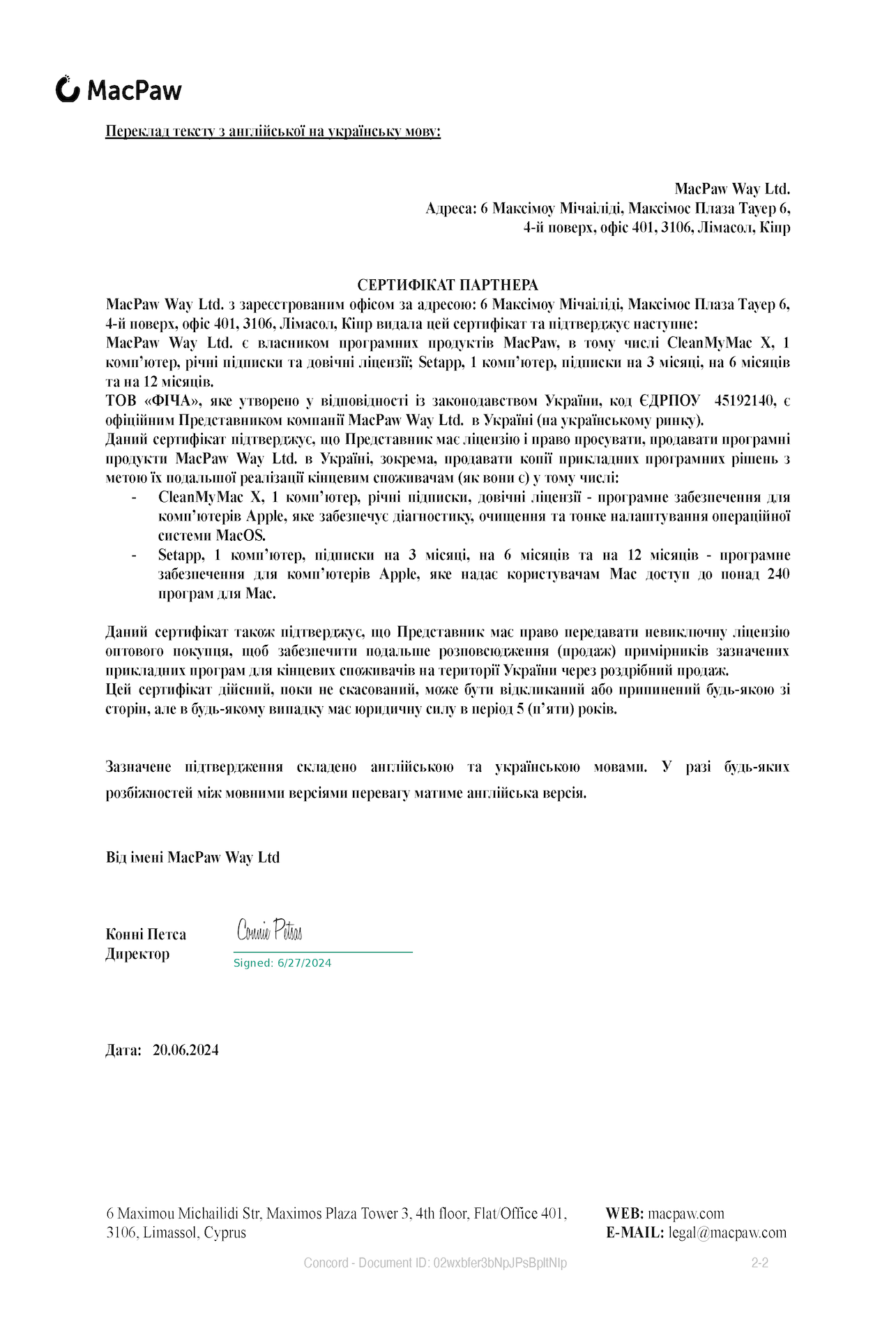 Офіційний Представник компанії MacPaw Way Ltd. в Україні